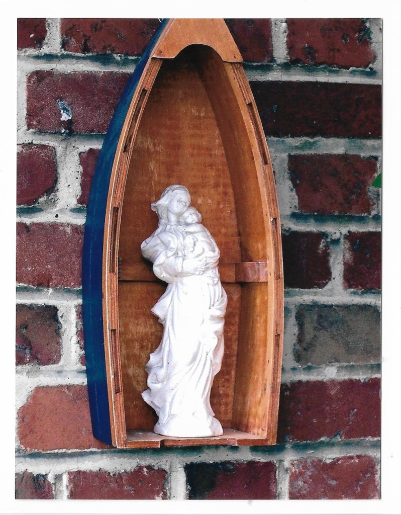 Au quartier du « Trieu de Leers » rue Jules Ferry. Là, également la niche subit des dégradations mais elle est réparée et la Vierge reste dans le quartier