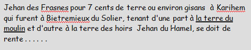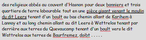 Ci-dessous nous présentons un extrait du plus ancien document connu faisant état de la présence d’un moulin à Leers.