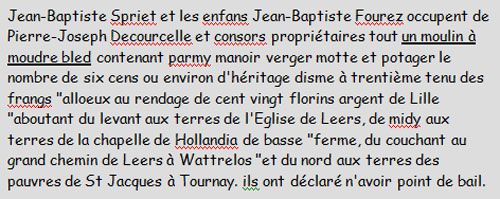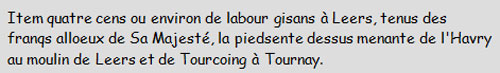 Ceux qui concernent Leers situent bien les propriétés de l’époque. On y apprend l’existence de deux moulins dans notre commune.