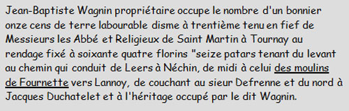 On y apprend que la branche de Wattinnes (de la ferme du même nom) comprenait dans sa part le moulin de Fournette dont il a déjà été question précédemment.