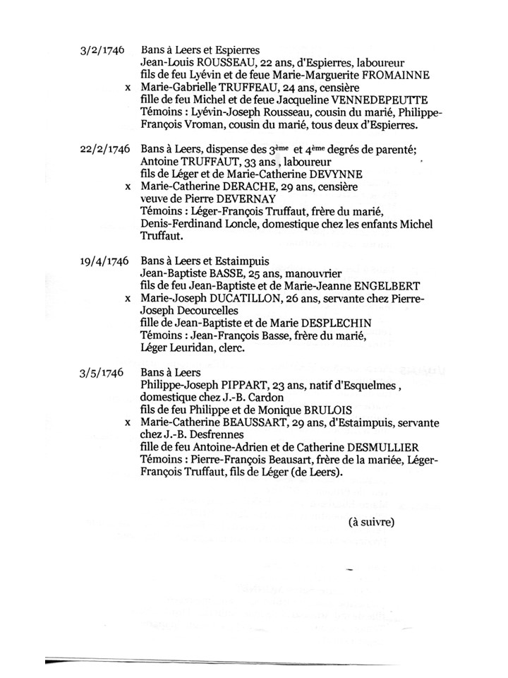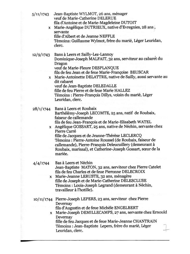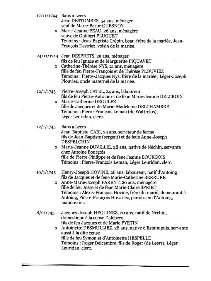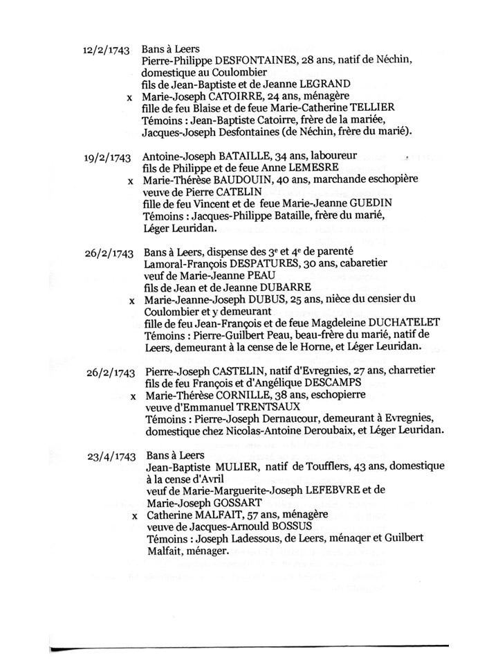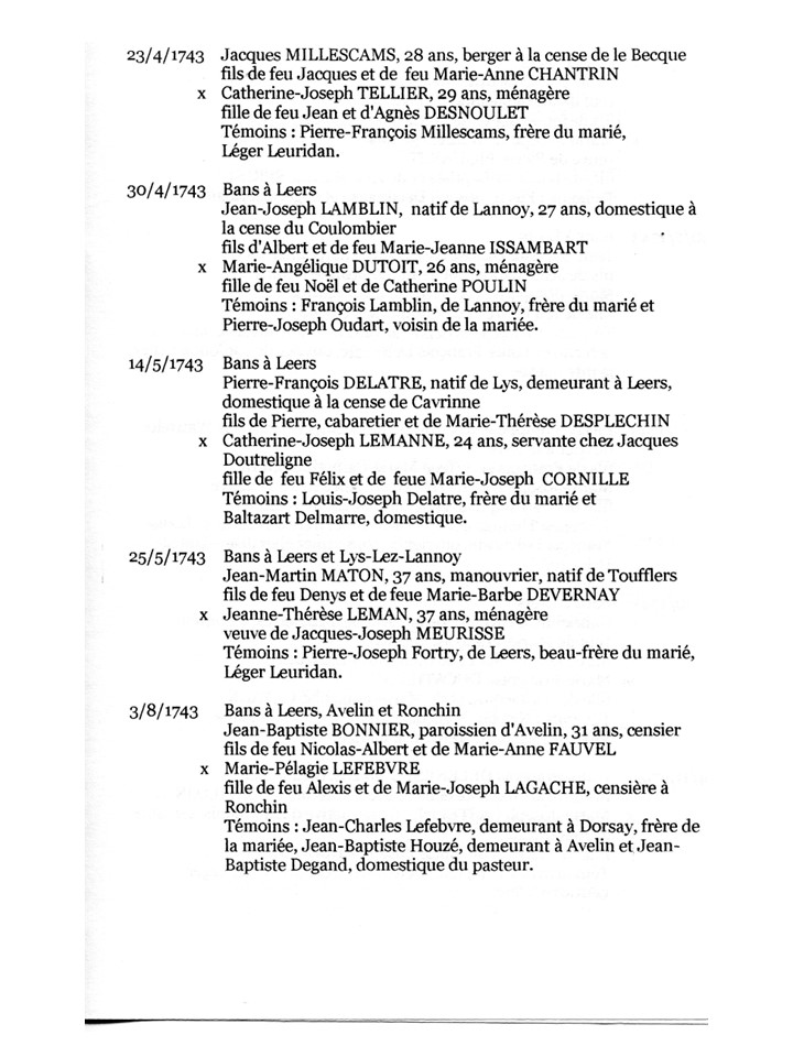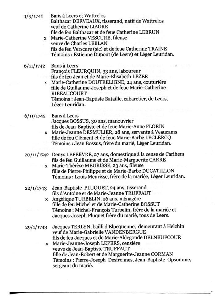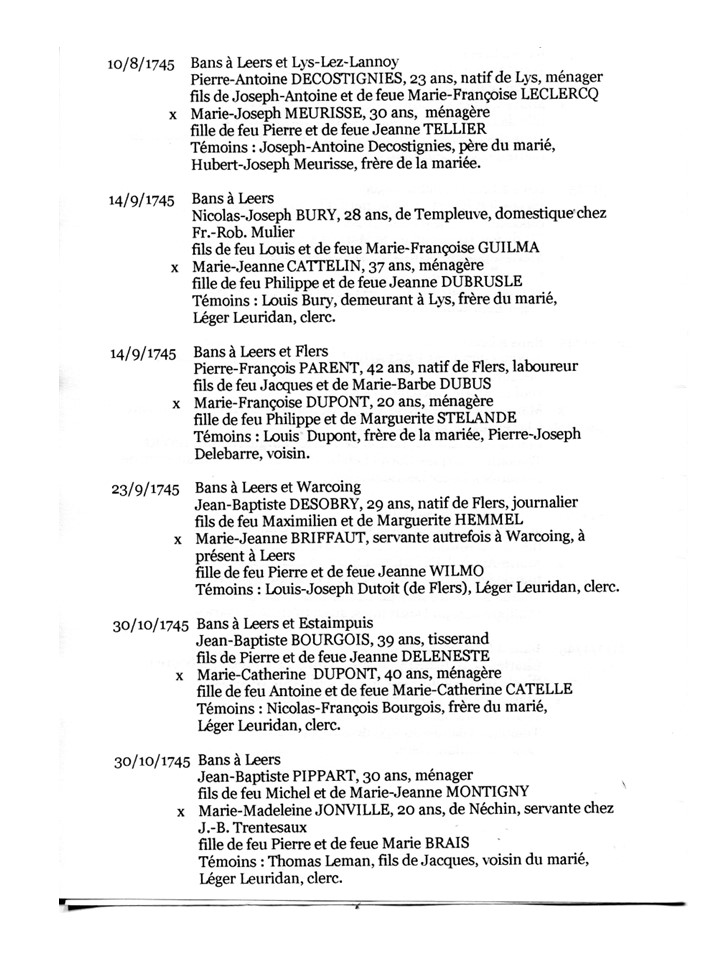 - Livret n°7 – Les registres paroissiaux de Leers mariages de 1740 à 1746